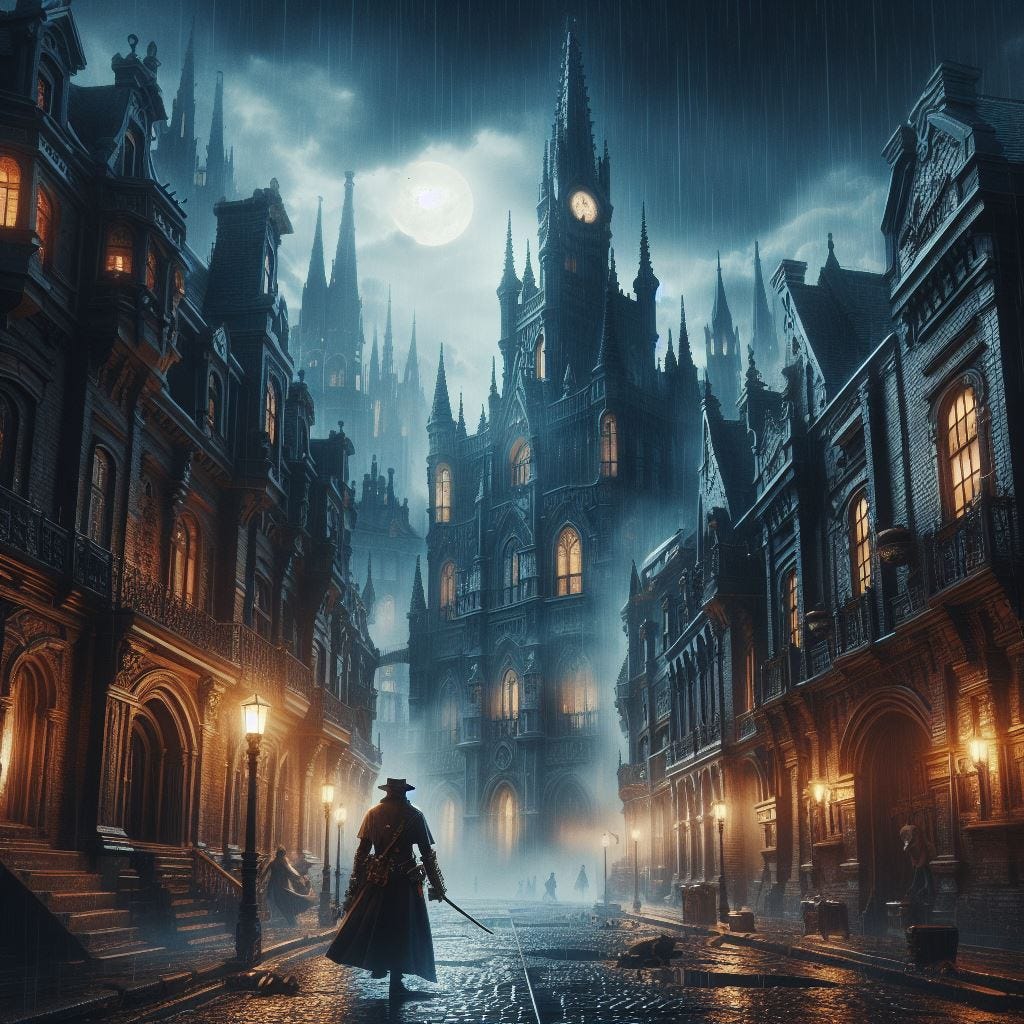 City streets overflowed with blood and rainwater as a thunderstorm roiled in the night sky. In the distance, the clock tower tolled the grim midnight hour. Dark shapes shuffled in agitation through alleyways, and the thunderous discharge of pistol fire followed in their wake.